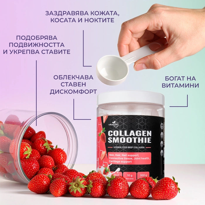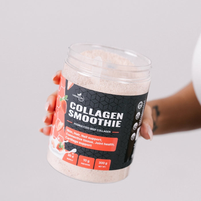 A partir de los 25 años, la producción natural de colágeno en el cuerpo disminuye, lo que conduce a la aparición de líneas finas, pérdida de elasticidad y molestias en las articulaciones. Nuestro Batido de Colágeno es una fórmula deliciosa e innovadora, creada para combatir estos signos. Combina colágeno bovino hidrolizado de alta calidad y fácil absorción con vitamina C, indispensable para su síntesis, y potentes antioxidantes procedentes de arándano salvaje y fresa liofilizados. Esta es tu dosis diaria de belleza y salud que actúa desde el interior hacia el exterior.
