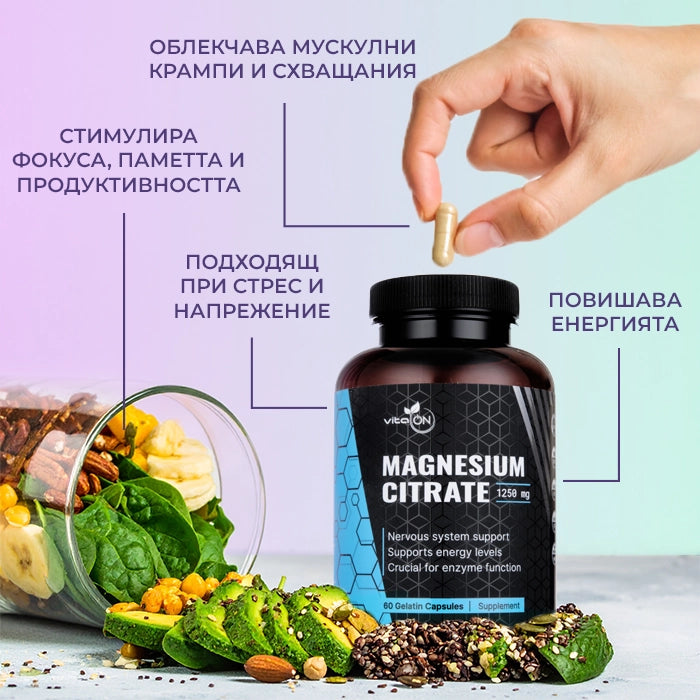 El magnesio es uno de los minerales más importantes para el cuerpo humano, participando como elemento clave en cientos de procesos bioquímicos que sostienen nuestra salud. A pesar de su papel insustituible, la alimentación moderna, rica en productos procesados, con frecuencia conduce a una ingesta insuficiente y riesgo de deficiencia. Esta condición puede manifestarse con fatiga, calambres musculares, irritabilidad y sueño deficiente. El citrato de magnesio de VitaOn está especialmente formulado para proporcionar a su organismo este mineral vital en una forma altamente biodisponible, que garantiza una rápida compensación de la deficiencia y la recuperación del funcionamiento óptimo de los sistemas del cuerpo.
