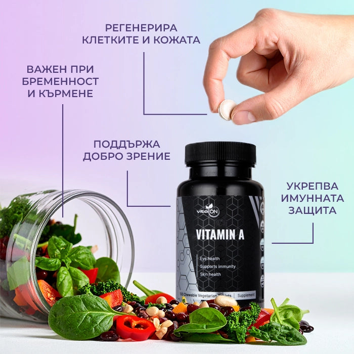 La vitamina A es un nutriente esencial que nuestro cuerpo no puede producir por sí solo, y la dieta moderna a menudo no logra aportar cantidades suficientes. Por eso creamos nuestras tabletas masticables: una forma fácil y agradable de obtener esta vitamina clave. Nuestra fórmula está enriquecida con arándano silvestre liofilizado, un potente antioxidante para la salud ocular, y fibras prebióticas que favorecen su absorción. Es un apoyo integral para tu visión, inmunidad y salud de la piel.
